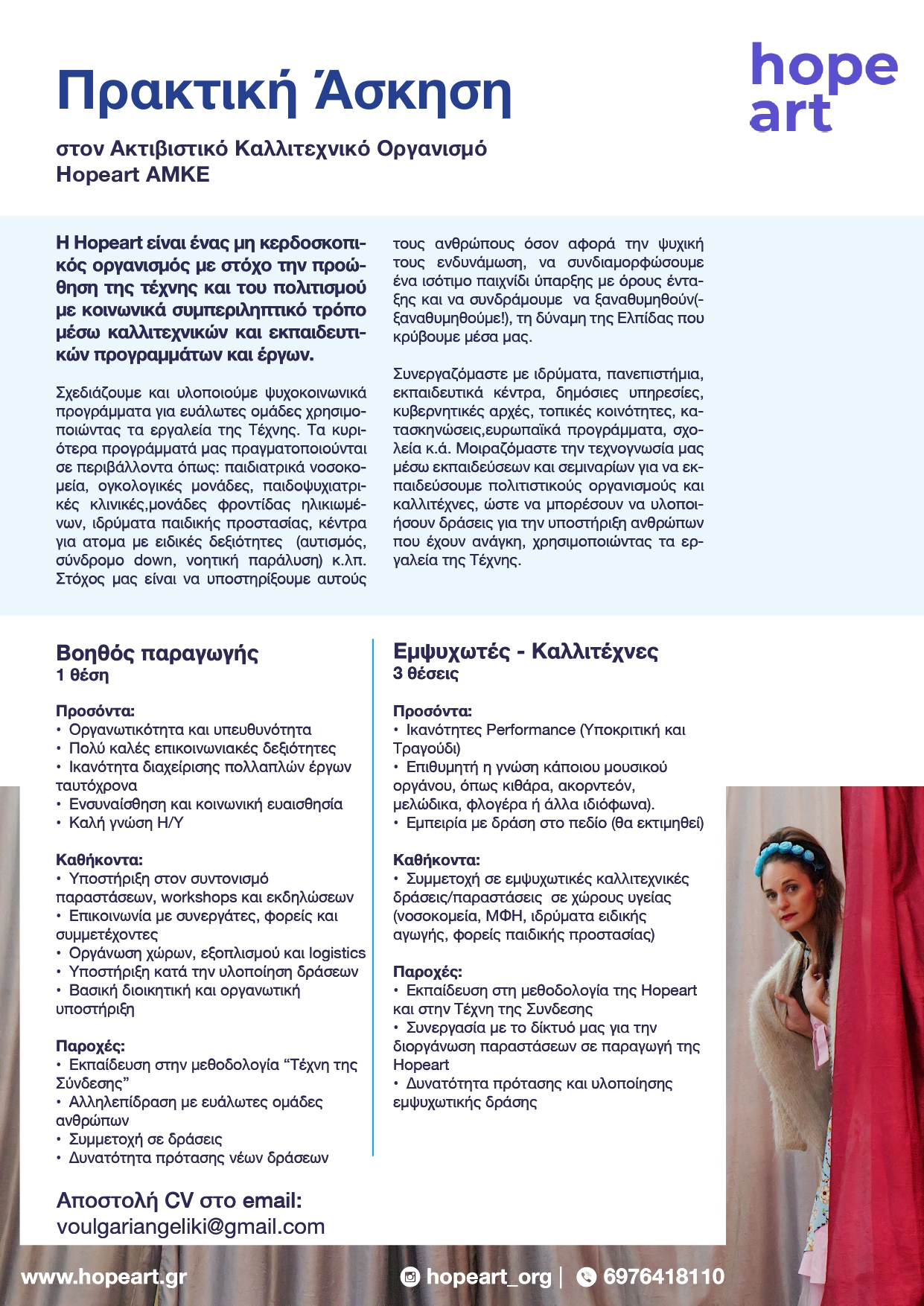 Πρακτική Άσκηση στον Ακτιβιστικό Καλλιτεχνικό Οργανισμό Hopeart ΑΜΚΕ